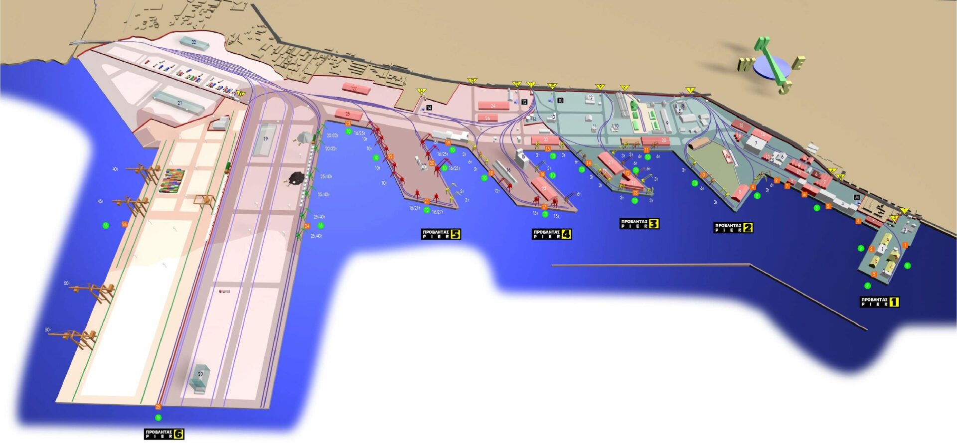 | Ντόκο Αρ. | Μήκος (μ) | Βάθος (μ) | βρίσκεται στην προβλήτα Αρ. |