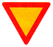 | Ρ-1 | Υποχρεωτική παραχώρηση προτεραιότητας.Η πινακίδα αυτή σημαίνει οτι στον κόμβο πρό του οποίου τοποθετούνται, οι οδηγοί πρέπει να παραχωρούν την προτεραιότητα στα οχήματα, τα οποία κινούνται στην άλλη οδό |  |