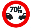 | Ρ-26 | Απαγορεύεται η οδήγηση οχήματος σε απόσταση μικρότερη των (πχ 70) μέτρων από του προηγούμενου |  |