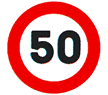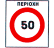 | Ρ-32 | Η μέγιστη ταχύτητα περιορίζεται στον αναγραφόμενο αριθμό (πχ 50) χλμ.την ώρα.Αναγραφή αριθμού τόννων σε πρόσθετη πινακίδα που τοποθετείται κάτω από την πινακίδα Ρ-32 σημαίνει ότι ο περιορισμός της ταχύτητας αφορά μόνο οχήματα συνολικού βάρου που υπερβαίνει τον αριθμό αυτό |  |